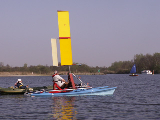 "Twice Lucky" is a 13ft "Hawke Surfcat" grp catamaran that I have used for testing my wingsails.