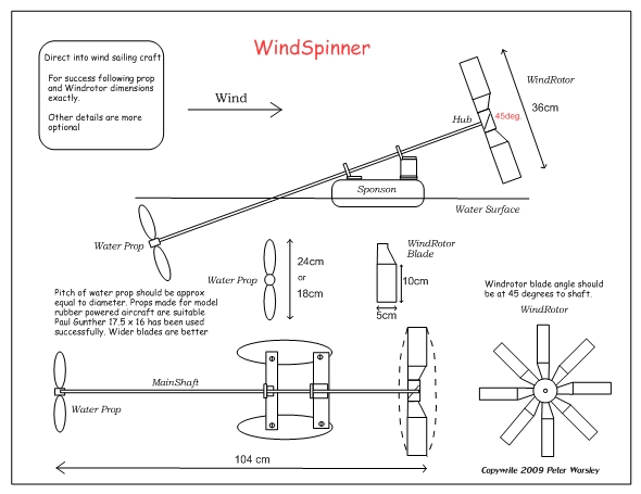 More than 10 years ago in the early 1990s a page was published describing a wind-driven boat, little more than a toy, that could progress directly into the wind that powered it. There was considerable interest in this and after experimentation I was able to produce this updated version called "Windspinner".